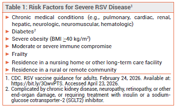 5. CDC. RSV vaccine guidance for adults. February 24, 2026. Available at: https://bit.ly/3QwvPTS. Accessed April 23, 2026.